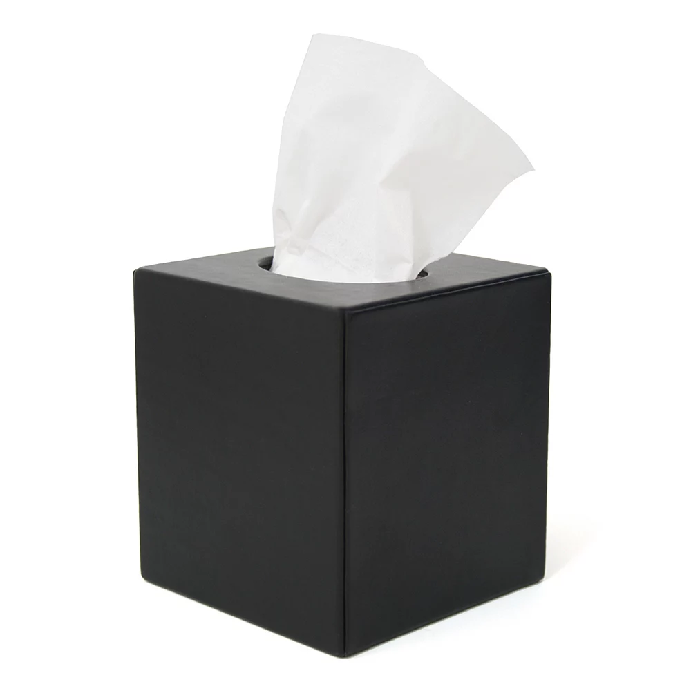 With its handcrafted, modern design, this Royce Leather tissue holder will give your decor a luxurious look. In black.