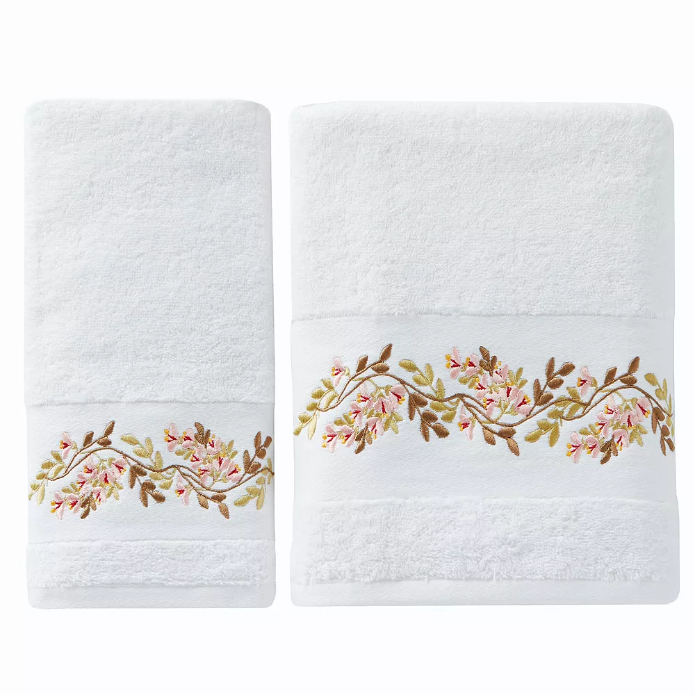 Incorporate a beautiful floral pattern into your bathroom decor with this Misty floral bath towel.