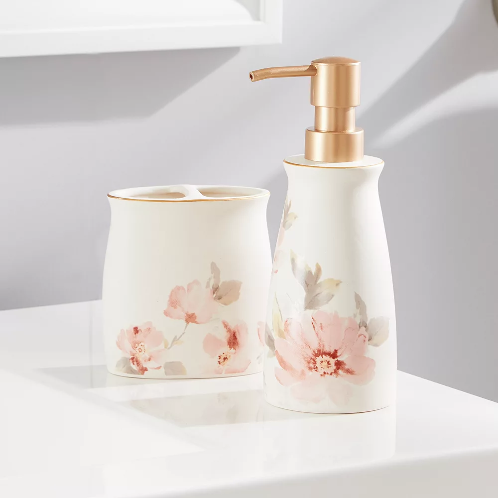 Incorporate a beautiful floral pattern into your bathroom decor with this Misty floral toothbrush holder.
