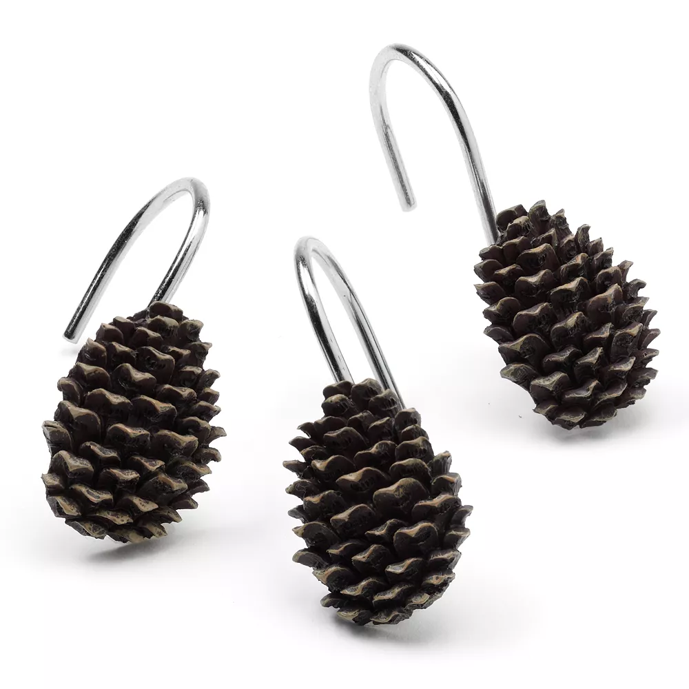 These Pinehaven shower curtain hooks bring the woods to your bathroom. You’ll get lost in the natural look and feel of the dimensional pinecones on these shower curtain hooks. Coordinate with the entire Pinehaven bath ensemble to complete your bathroom decor. In multi.