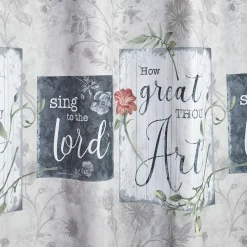 - Bring blessing and beauty to your bath. This lightweight fabric shower curtain features a patchwork floral pattern and inspirational sayings. 12 button-holes line the top for easy hanging; hooks sold separately. Use of a liner is recommended; not included.