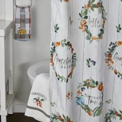 - Dispenser: 7.75″ x 3.5″ x 3.5″; Rug: 20″ x 30″; Hand Towels: 16″ x 26″