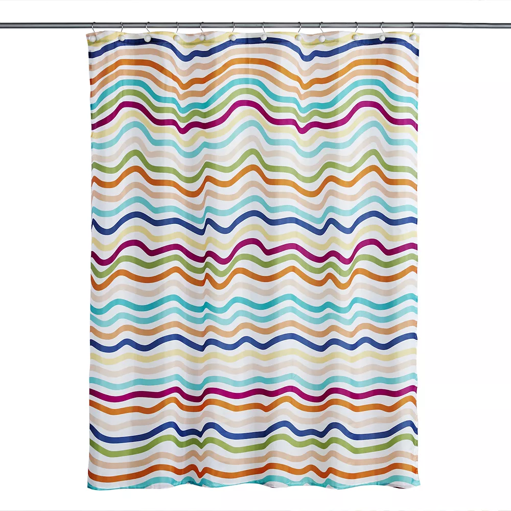 Add a bright and vibrant touch to your bathroom decor with this soap pump and shower curtain set from SKL Home.