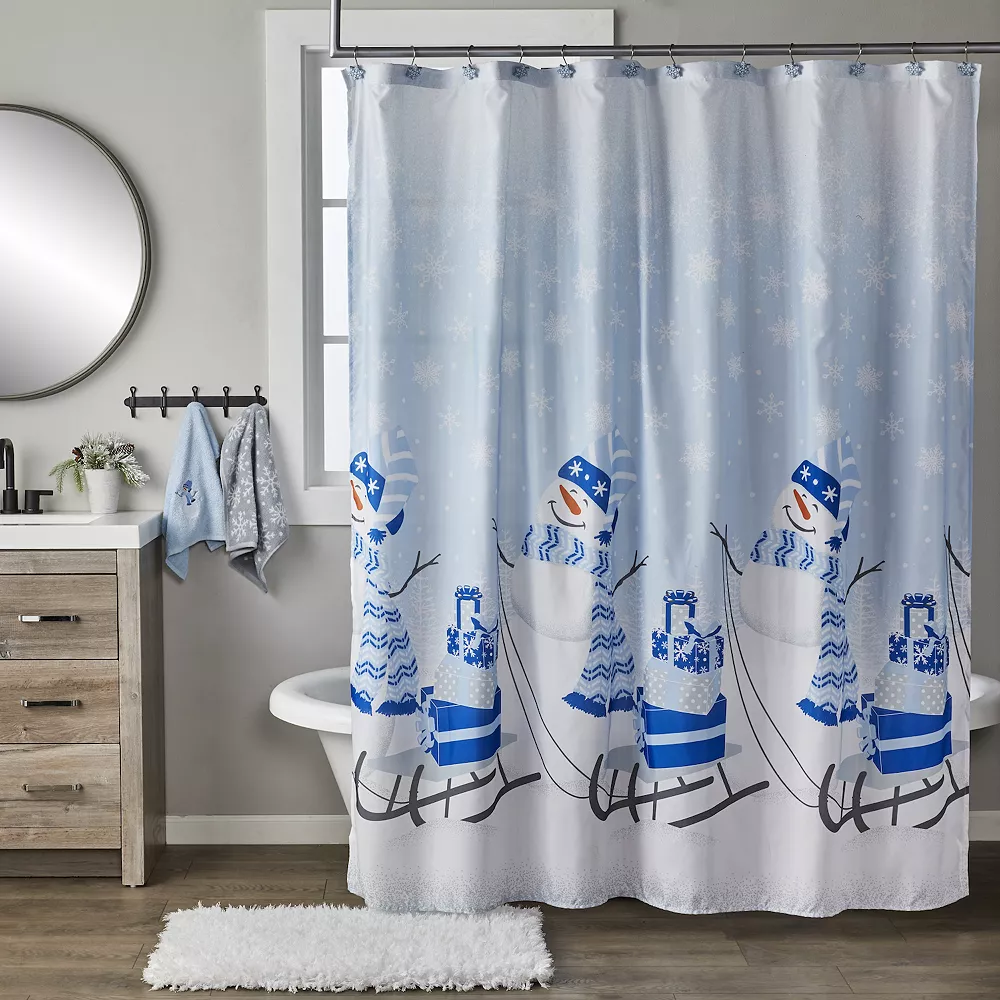Add extra fun to the winter season with this snowman shower curtain and hook set from SKL Home.
