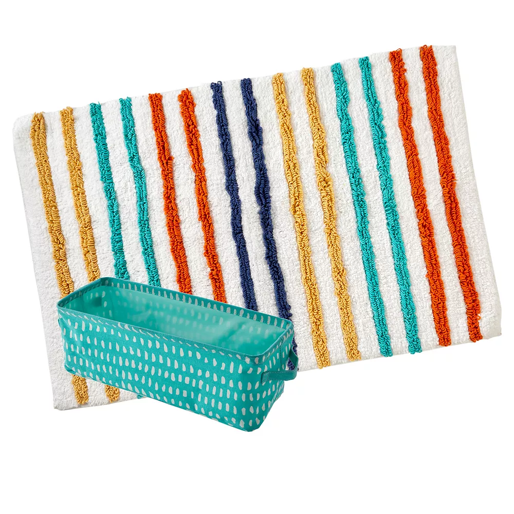 Add a pop of color and some fun to your bathroom decor with this striped bath rug and matching storage bin from SKL Home.