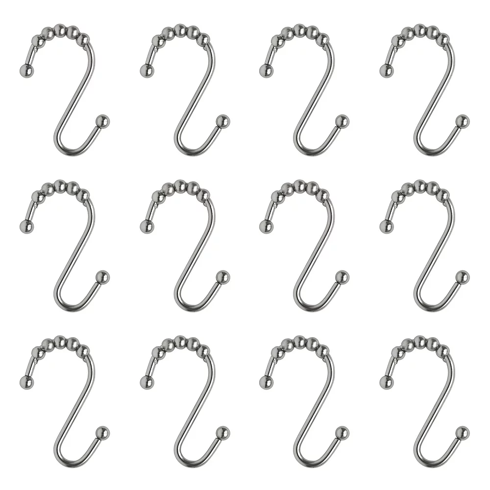 - Make hanging your shower curtain a breeze thanks to these shower curtain hooks. The roller glide balls allow for an effortless, quiet glide across the shower rod. S shape design with ball at the base will keep your hook on the rod. Rustproof construction.