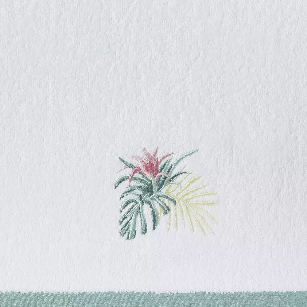 - Embroidered palm leaves hand towel with coordinating pin tuck stripes