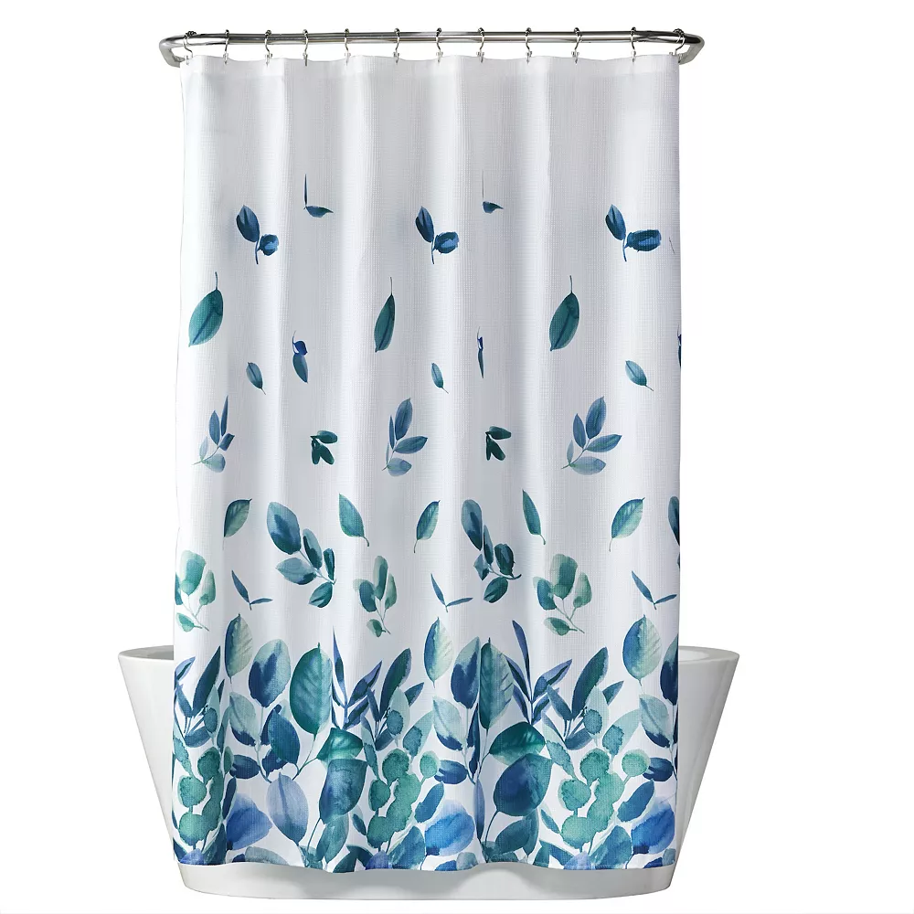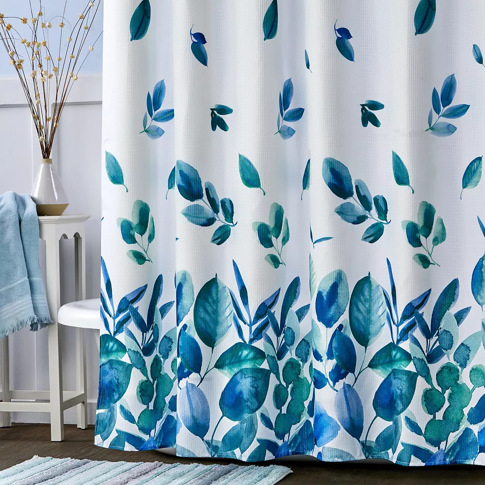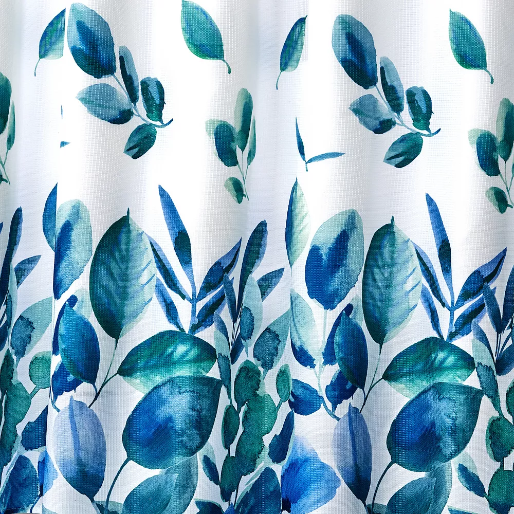 - Refresh your space with the Ontario shower curtain. This lightweight, machine-washable woven features a watercolor-like leaf design in beautiful shades of teal, aqua, and blue. 12 button holes line the top for easy hanging. Use of a liner is recommended; liner and hooks not included. Refresh your bathroom with Ontario.