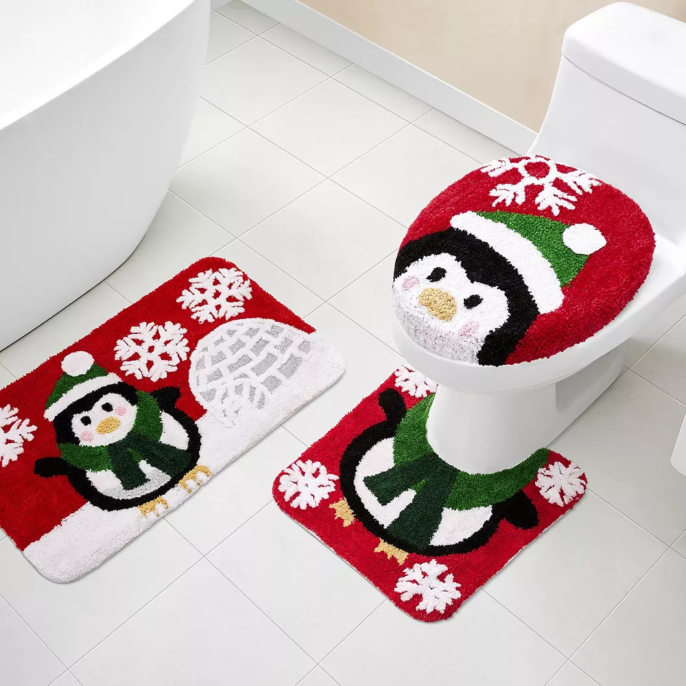 Easily elevate the look and feel of your space with this stylish VCNY Home Penguin 3-Piece Holiday Bath Rug Set.