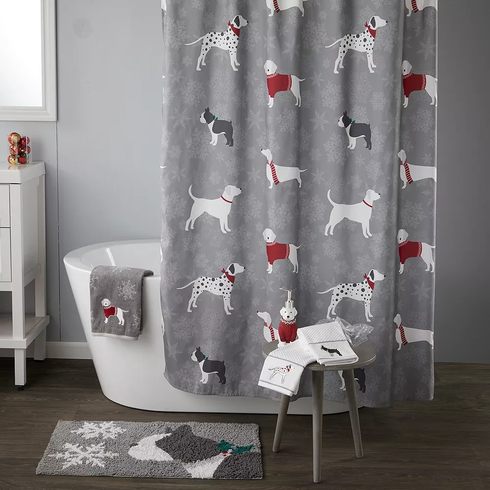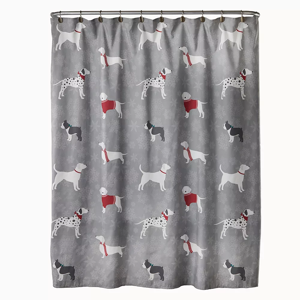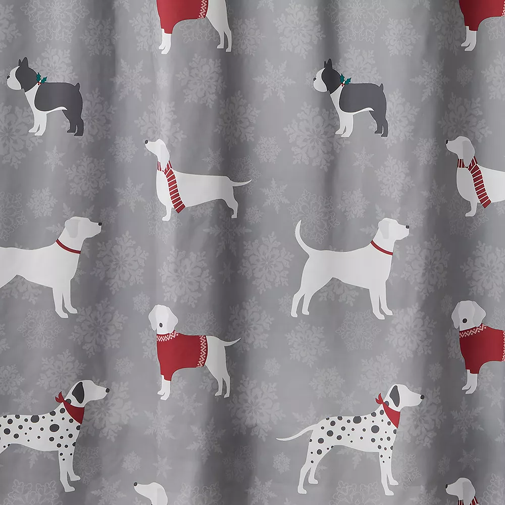 - Lightweight fabric features a snowflake print and cute festive dogs