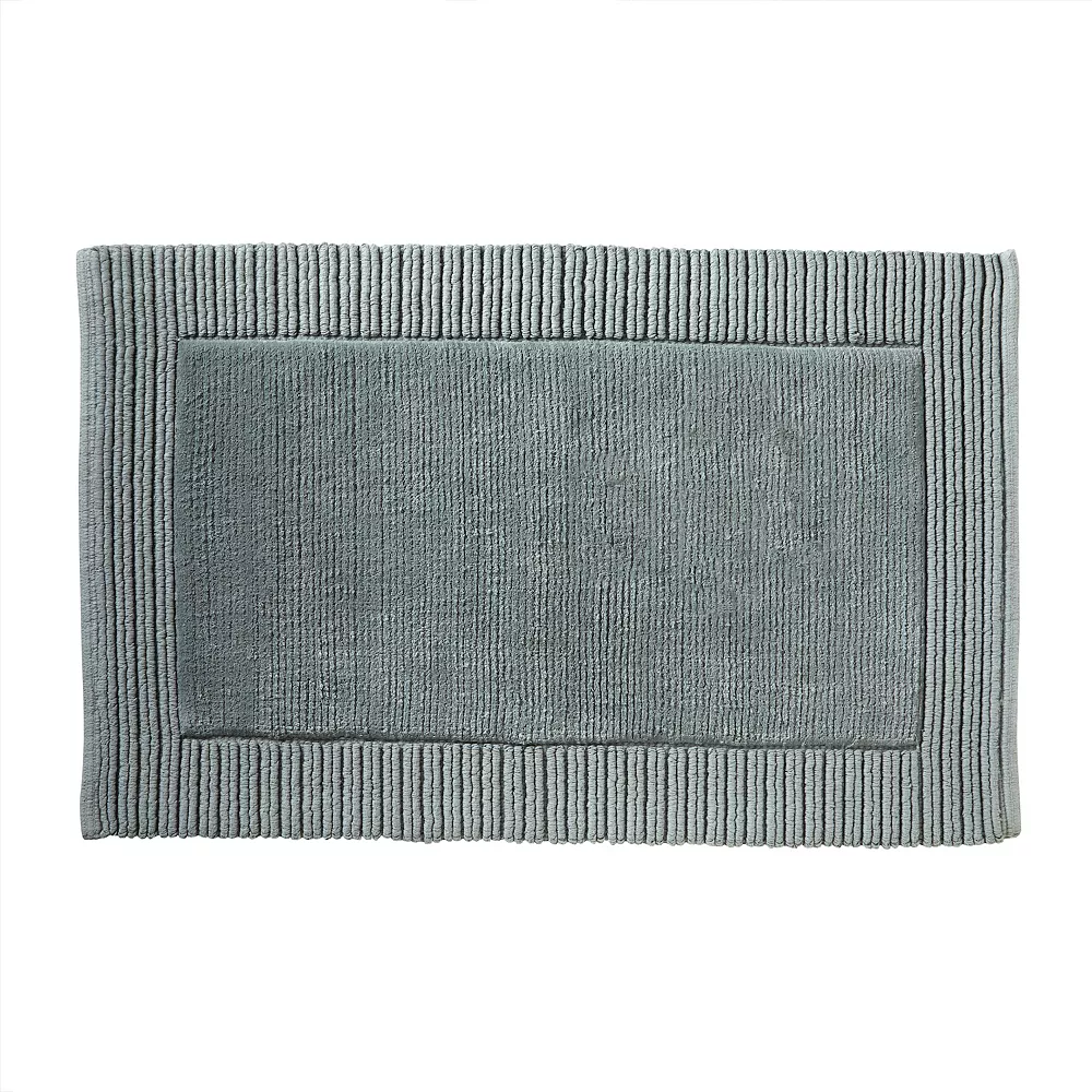 - This plush frame-loomed rug features a wider ribbed-like weave along the border. With a solid color and simplistic styling, this rug is versatile for use in bath, kitchen or any room you choose.