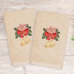 Linum Home Textiles Christmas 2-pack Bells Embroidered Luxury Turkish Cotton Hand Towels