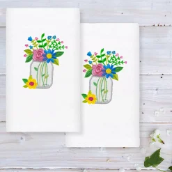 Linum Home Textiles Country Bouquet Embroidered Luxury Turkish Cotton Hand Towels 2-pack Set