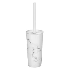 MDesign Steel/Plastic Toilet Bowl Brush 1.7 Gal Trash Can Combo – Taupe Marble