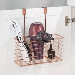 MDesign Steel Over Cabinet/Door Hair Dryer Storage Organizer Holder – Chrome