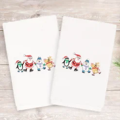 Linum Home Textiles 2-pack Christmas Skating Party Embroidered Hand Towel Set