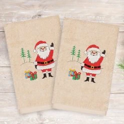 Linum Home Textiles 2-pack Christmas Santa Waving Embroidered Hand Towel Set