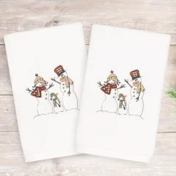 Linum Home Textiles 2-pack Christmas Snow Family Embroidered Hand Towel Set