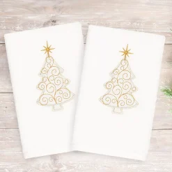 Linum Home Textiles 2-pack Christmas Scroll Tree Embroidered Hand Towel Set